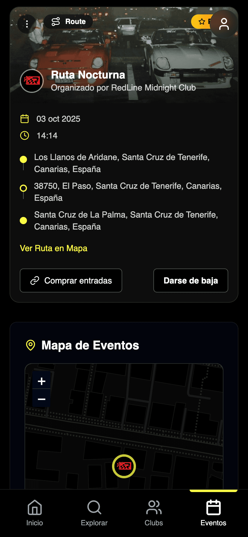 Descubre clubes automovilísticos cercanos o en cualquier parte del mundo con la función de mapa interactivo. Únete fácilmente a la comunidad que más se adapte a ti.